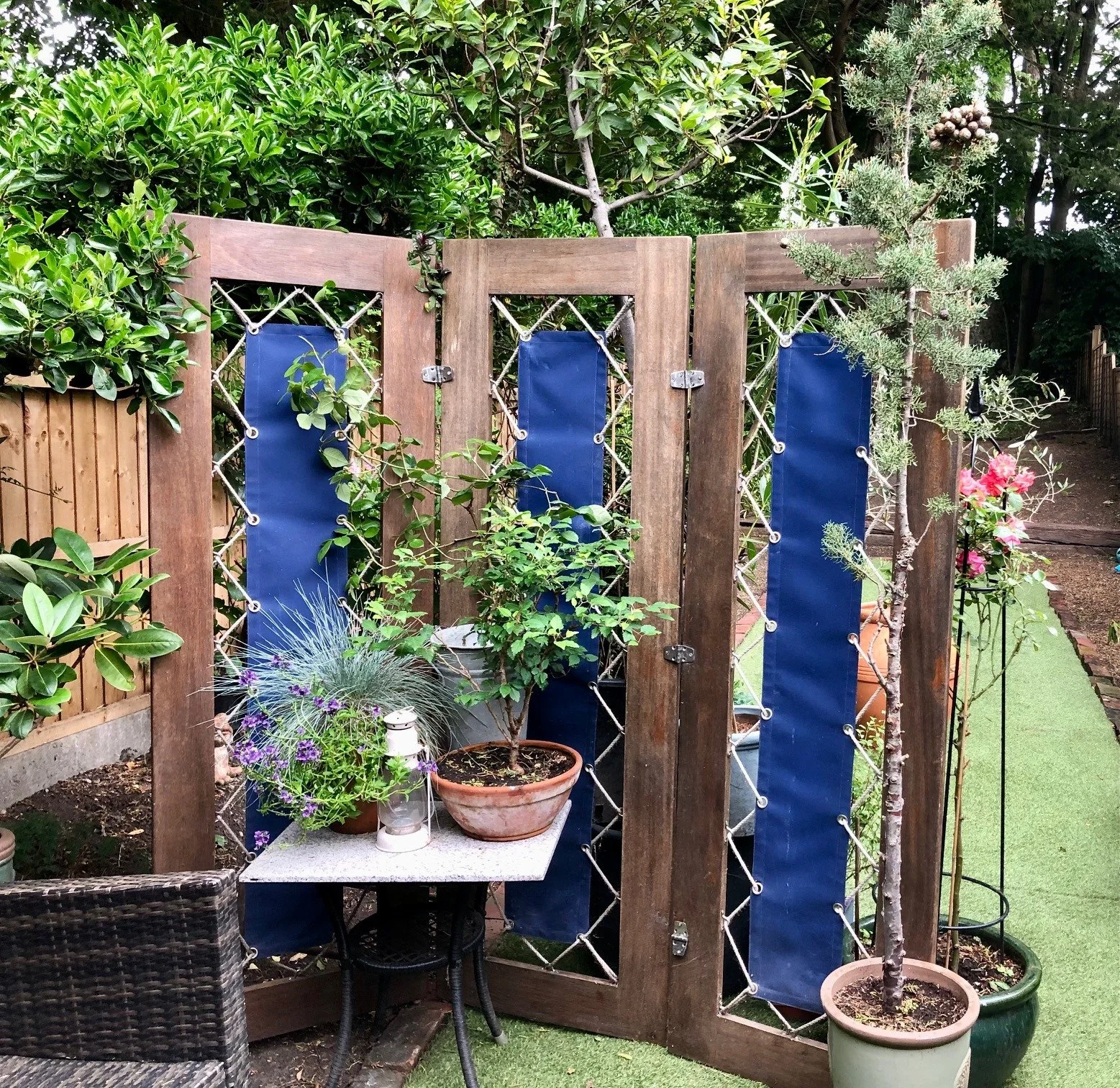 You may wish to have more privacy from others and you can do this by adding a screen - seen in the image to the right, or simply want to make the area separate to main garden. This can be achieved cost effectively using trellising or make this your statement piece if you have a bigger budget, but make sure it is suitable for outdoor use and is safe from falling.